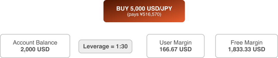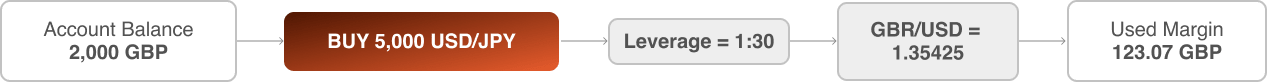 One of the benefits of CFD trading is you can apply leverage to your positions. This reduces how much money is required to open a trade. TrustEdge Option offers up to 1:30 leverage for trading USD/JPY, which means you only need to provide 3.33% margin to open a position.