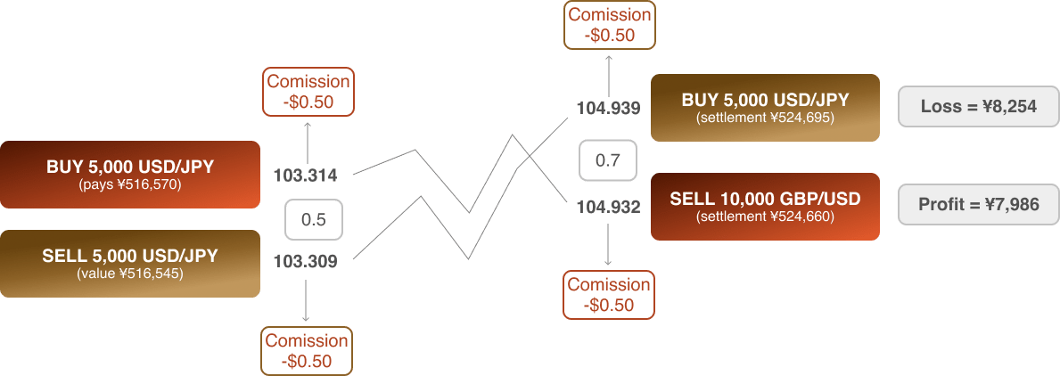 When you go long on USD/JPY, you’re theoretically buying dollars with yen. When you close the trade, it’s offset with another order in the opposite direction. The difference between the opening order and closing order determine the amount of profit or loss. Your profit or loss will be calculated in JPY. If the dollar strengthened against the yen, you’d get more yen when you close the transaction. If the dollar weakened, you’d get back fewer yen.